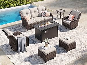 3-seat sofa/loveseat/swivel chairs/firepit/side table