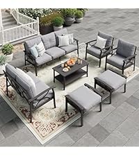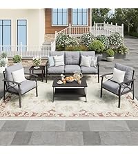 Outdoor Patio Furniture Set, 5 Piece Patio Conversation Set, Waterproof Wicker Patio Furniture Set, All Weather Combination Patio Conversation Sets with Cushions and Glass Table, Grey